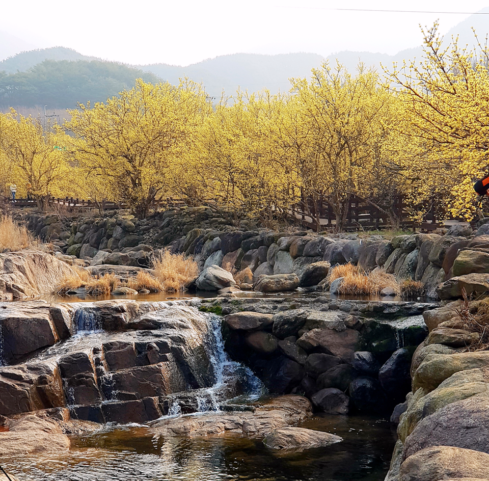 산수유(山茱萸)는 층층나뭇과에 속하는 낙엽성 소교목으로 잎은 마주나기로 달리고 잎 뒷면에 반점이 있다. 아파트 정원이나 근처 공원에서 관상수로 어렵지 않게 볼 수 있는 산수유나무는 약간 건조한 양지쪽에서 잘 자란다. 열매는 타원형으로 붉게 익어서 말리면 작은 대추처럼 보이며 한방에서 약용으로 널리 쓰이고 있다. 노란색 꽃의 향연이 아름다워 봄꽃 축제로 유명한 구례군 산동면에는 높이가 7m, 둘레가 4.8m에 달하는 노거수 산수유나무가 있다. ‘산수유 시목’이라 부르는 나이가 1000년 묵은 산수유나무는 1000년 전 중국 산동성에 살던 처녀가 전남 구례군 계척마을로 시집을 오면서 고향의 향수를 달래고자 산수유 한 그루를 가져와 심은 것이 전국에 산수유가 퍼졌다고 한다. 산동면이라는 지명도 산수유에서 유래된 것으로 산동 새댁이 심은 나무는 할머니 산수유나무로 부르고 있다.